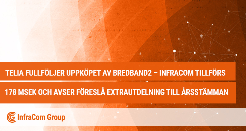 InfraCom har, som tidigare kommunicerats, accepterat Telias bud avseende bolagets totala exponering i Bredband2. Likviden för aktierna beräknas finnas InfraCom tillhanda fredagen den 6 februari 2026.